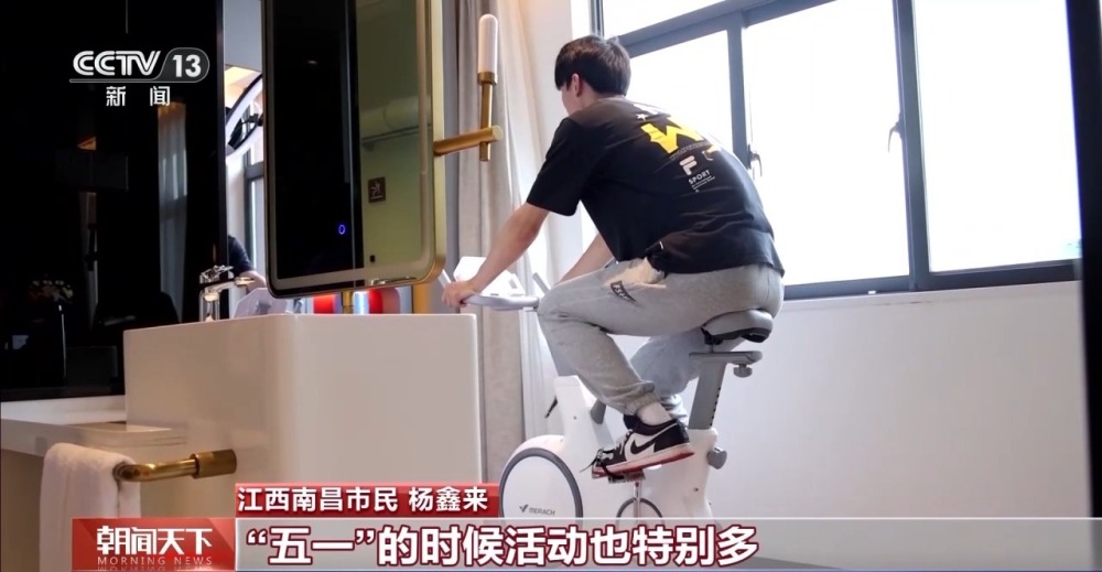 江西南昌市民 杨鑫来:像我自己平时也比较喜欢运动,选择“五一”期间在这边入住,是因为这边场馆非常多,“五一”的时候活动也特别多,我自己喜欢的运动在这边都体验得到。